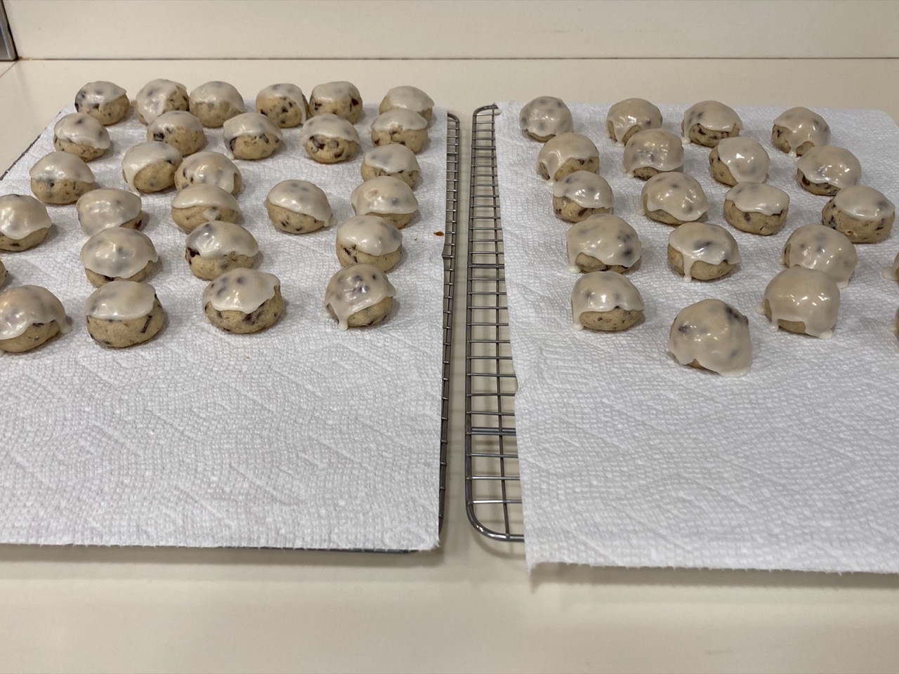 - Dip tops of cooled cookies in icing and return to cooling rack.