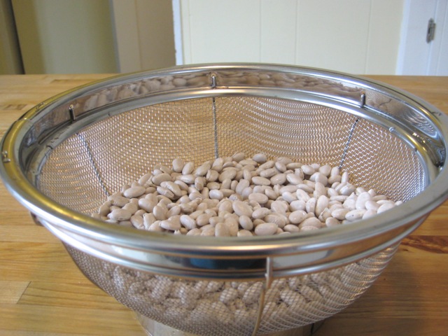 Slowly pour beans into a colander. Remove any dirt, pebbles, or other debris.