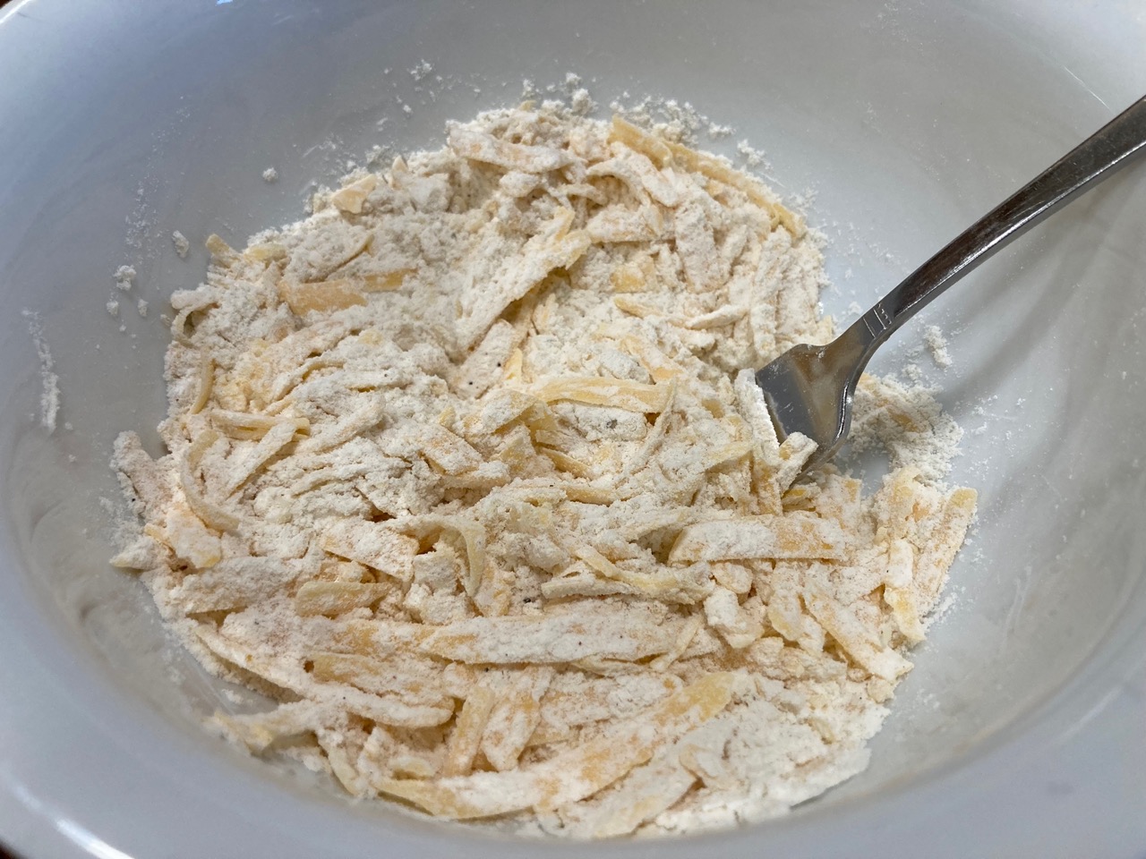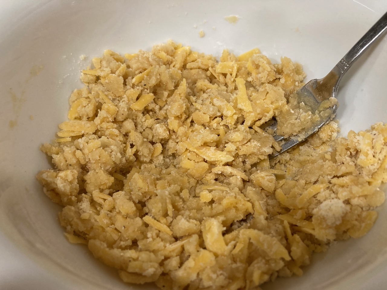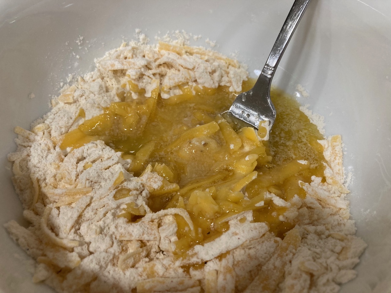 - Use a fork to incorporate the butter into the flour and spice mixture.