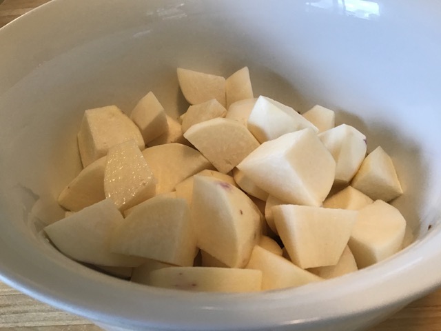 - 4 to 6 medium-sized turnips; tops and bottoms removed and peeled